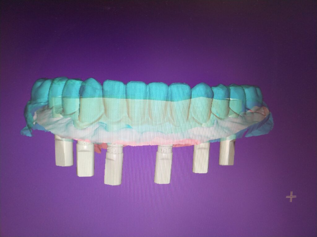 Una vez que los implantes se han oseointegrado se fabricará la prótesis fija, primero se realiza la base metálica que otorgará la resistencia a la prótesis y luego se agregará la parte de la encía acrílica y los dientes artificiales. Luego se instala sobre los implantes atornillándose a ellos, se chequea que la oclusión, la estética y la fonética sean satisfactorias y se toma una radiografía panorámica para controlar.